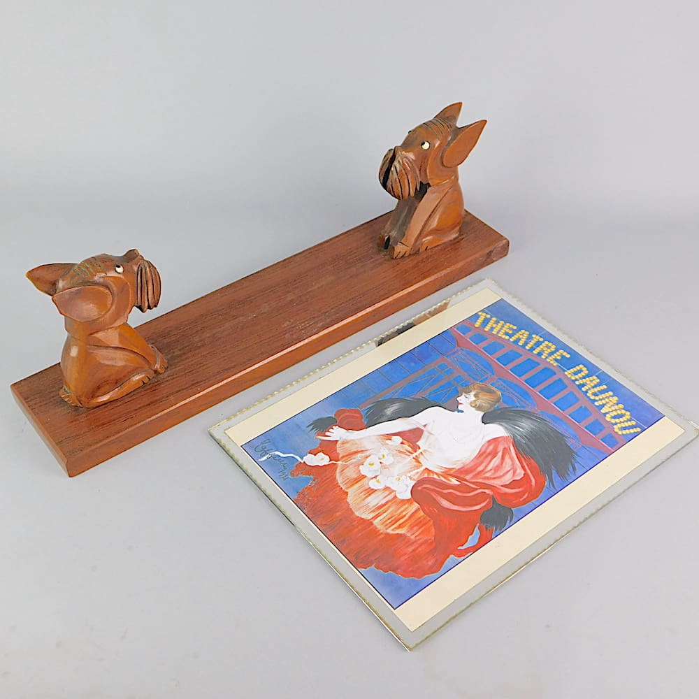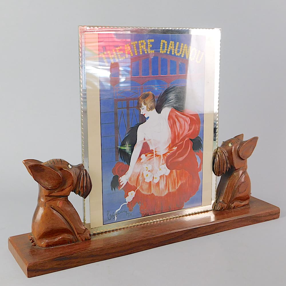 French hand made carved wooden dogs art deco photo frame.