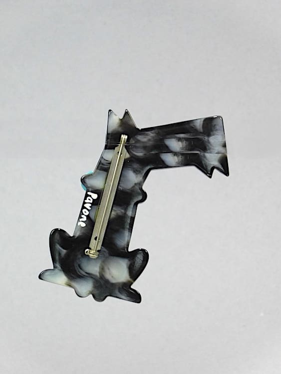 French vintage galalith, hand painted art deco Ric the naughty terrier (Pol Rab) brooch.