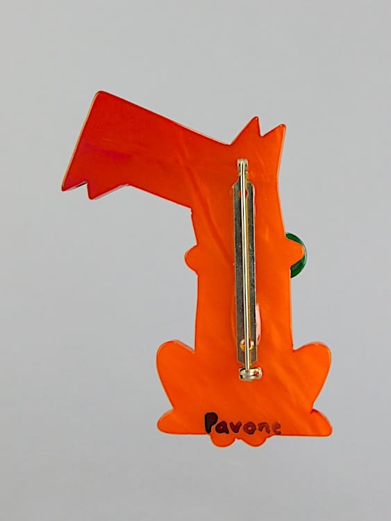French vintage galalith, hand painted art deco Ric the naughty terrier (Pol Rab) brooch.