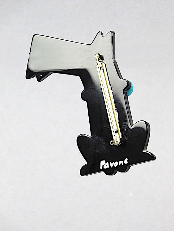 Signed Pavone to the reverse and fitted with a roll safety clasp.