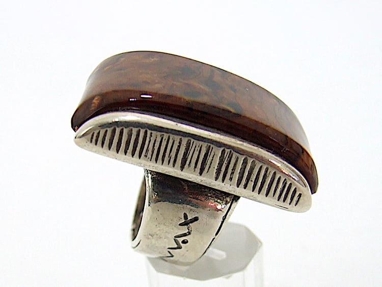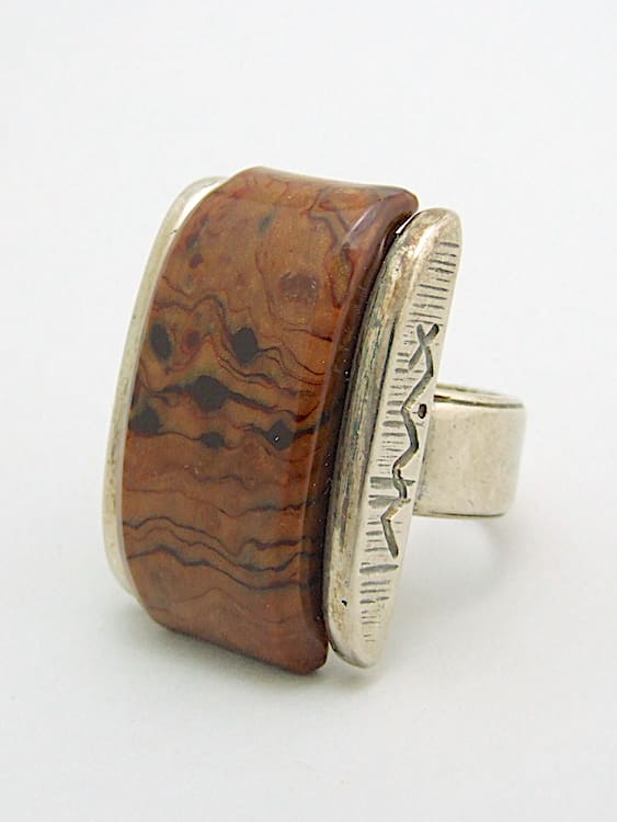 Huge art deco style phenolic resin ring. A signed vintage Debraine and no longer in production. It will adjust to fit any size of finger as its open to the back.