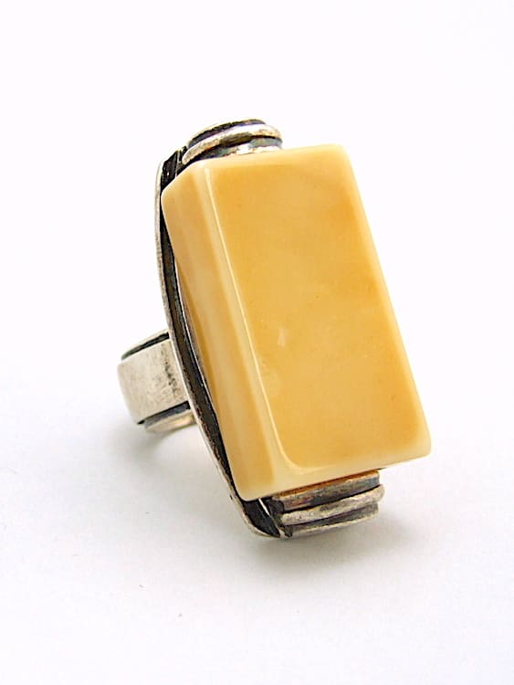 Huge art deco style phenolic resin ring. A signed vintage Debraine and no longer in production. It will adjust to fit any size of finger as its open to the back.