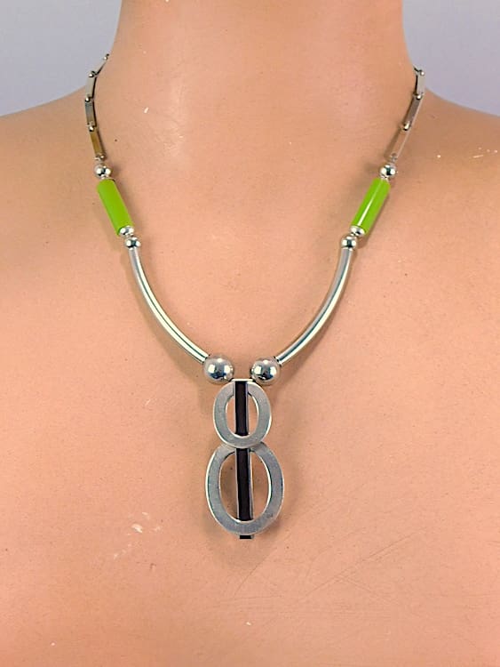 Modernist chrome and black and green galalith necklace. Made by Bengel in the early 1930’s.