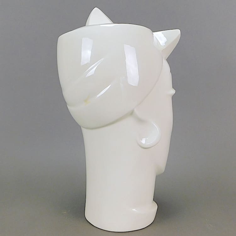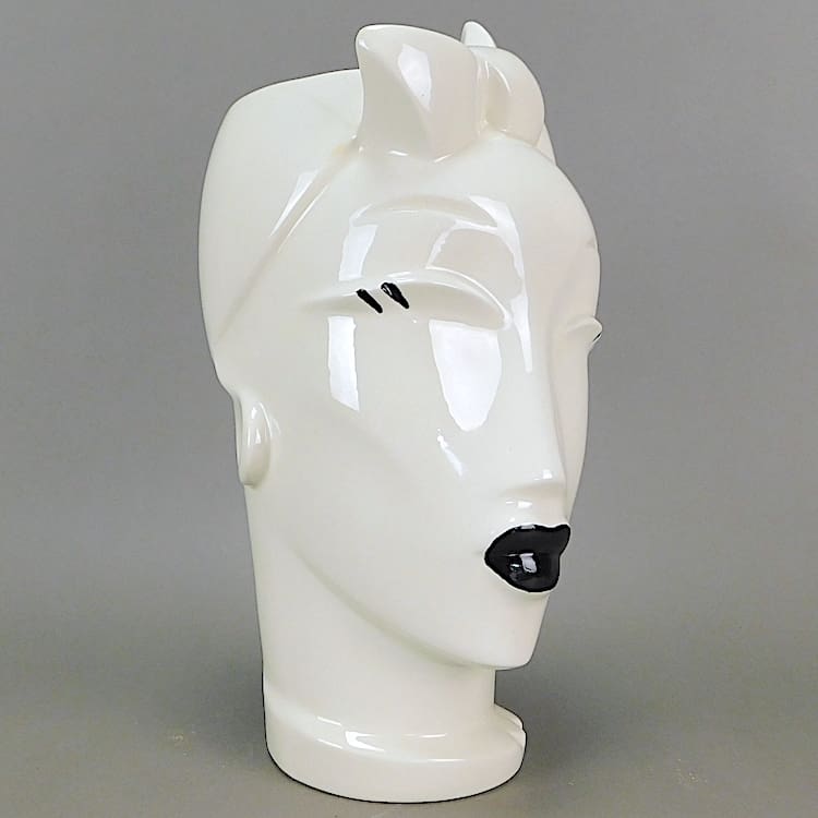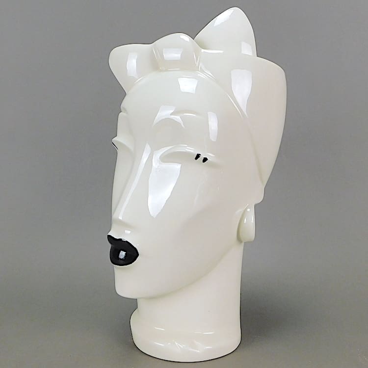 White art deco style ceramic jar with black detail entitled Rio, made by Lindsey B in 1984.