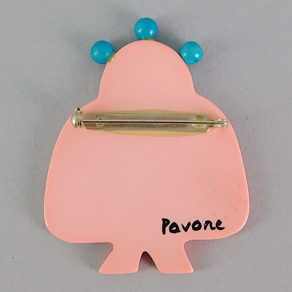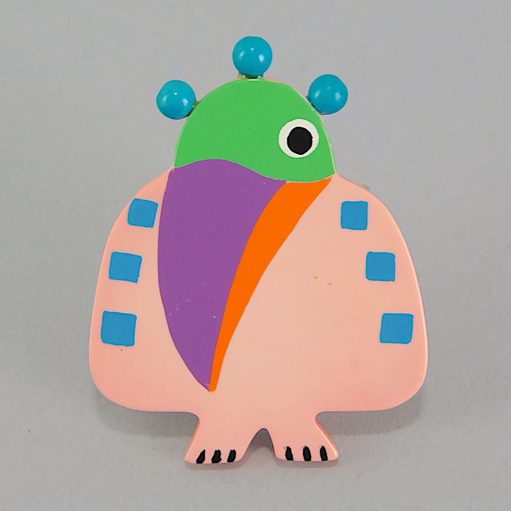 French vintage galalith hand painted wren (Roitelet) brooch.
