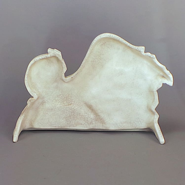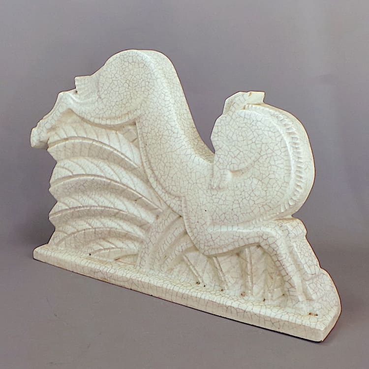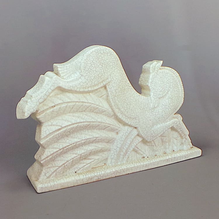 French Art Deco craquelier pottery running deer statue, made I believe for Primavera probably in the St Clement foundry although unsigned.