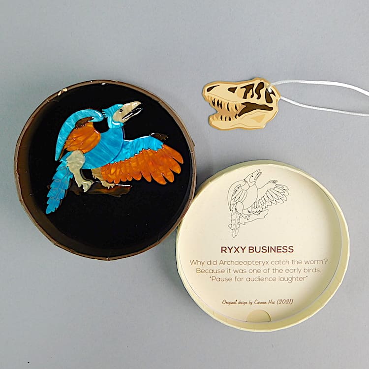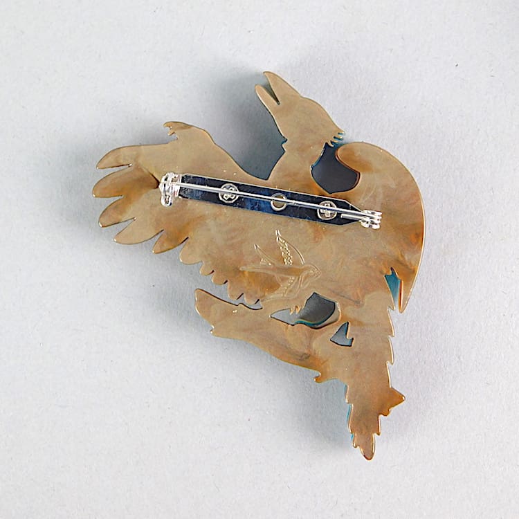 Dinosaur bird brooch. Stamped with the Erstwilder bird mark, comes in its original box with tag in and fitted with a safety clasp.