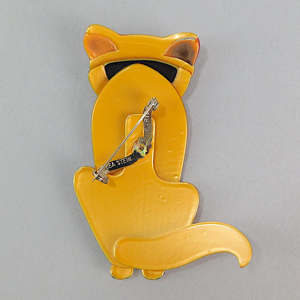Sacha – The Sitting Cat by Lea Stein. Signed on the safety V clasp.