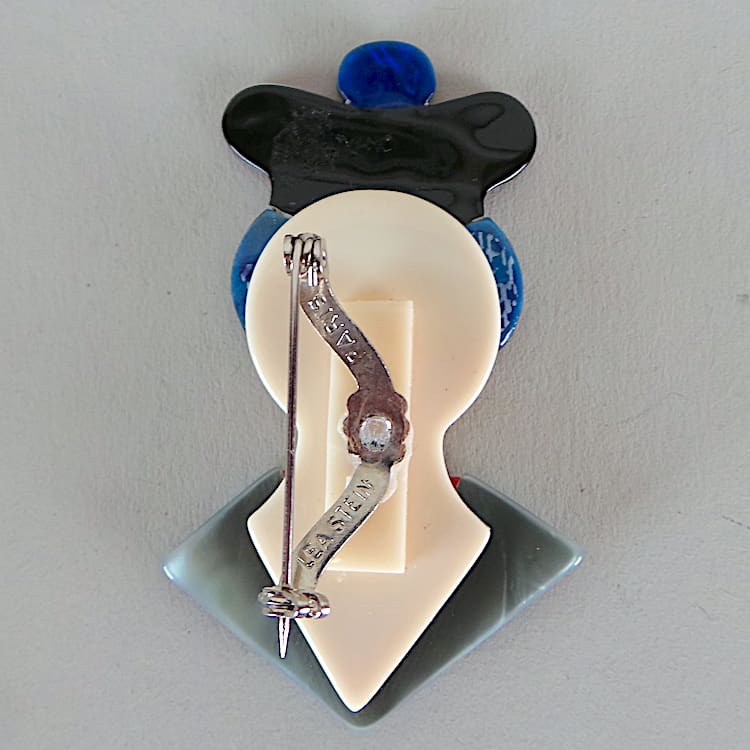 Early first edition Lea Stein French sailor brooch. Signed on the V safety clasp.