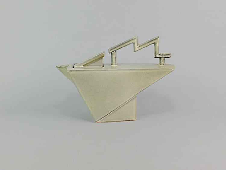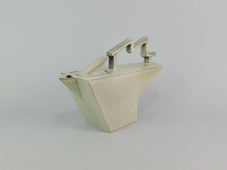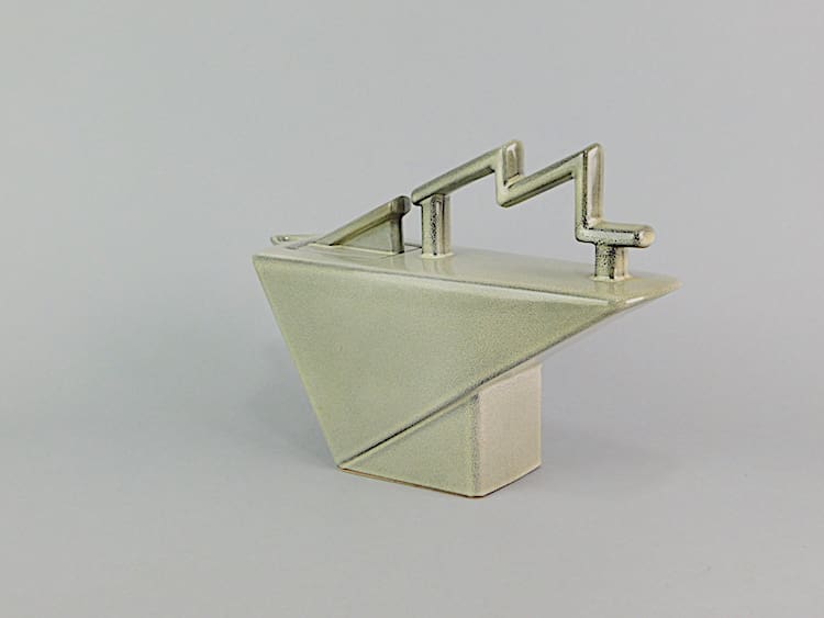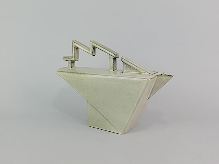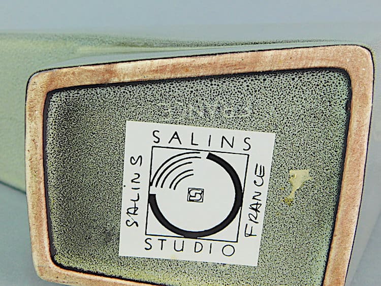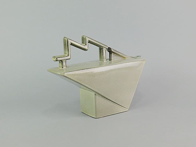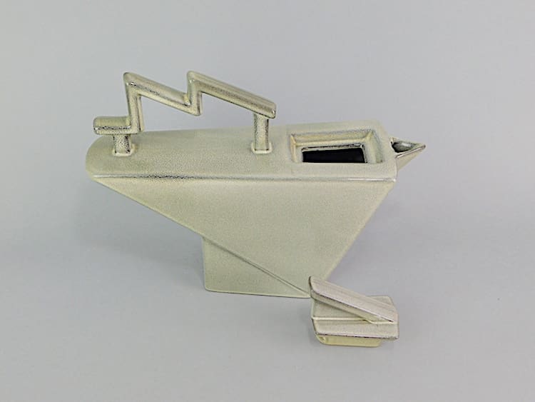 French Art Deco style large Salins teapot with lightning bolt handle. Made in the early 1970s and signed Salins France under the base.