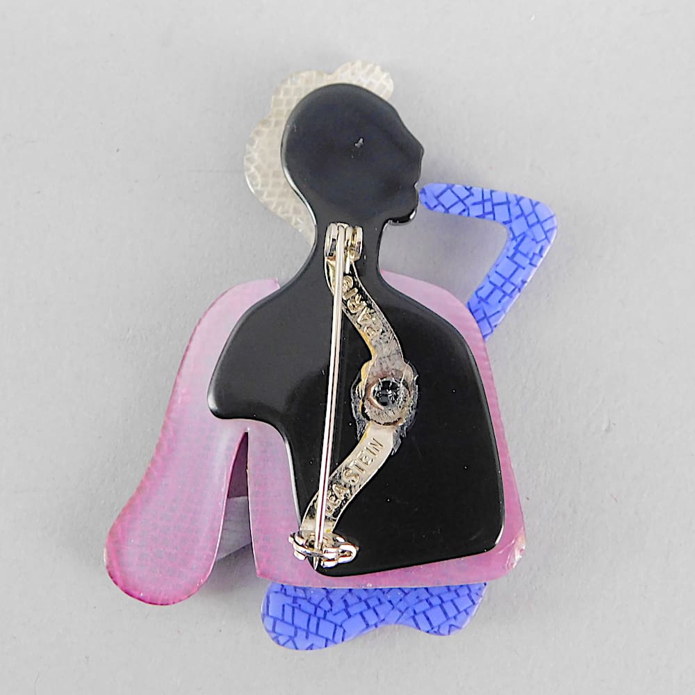 Vintage saxophonist brooch by Lea Stein signed on the V safety clasp.