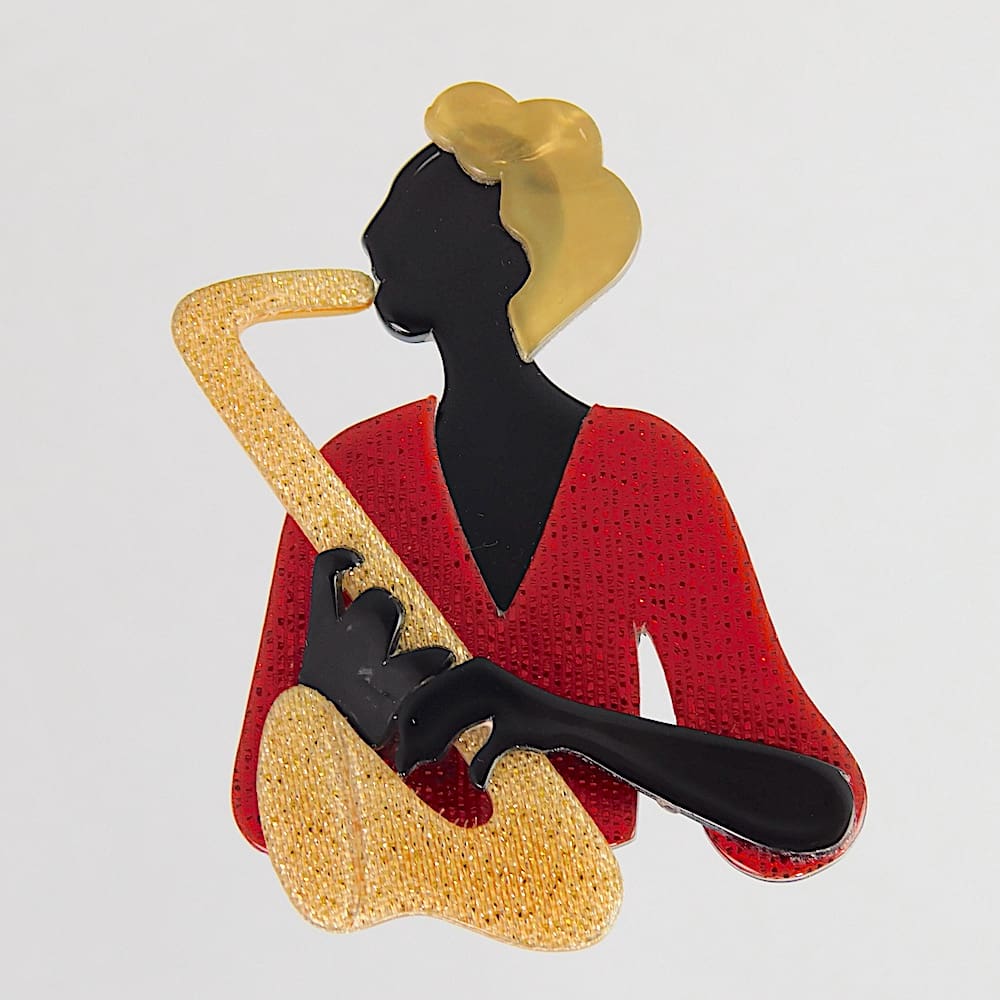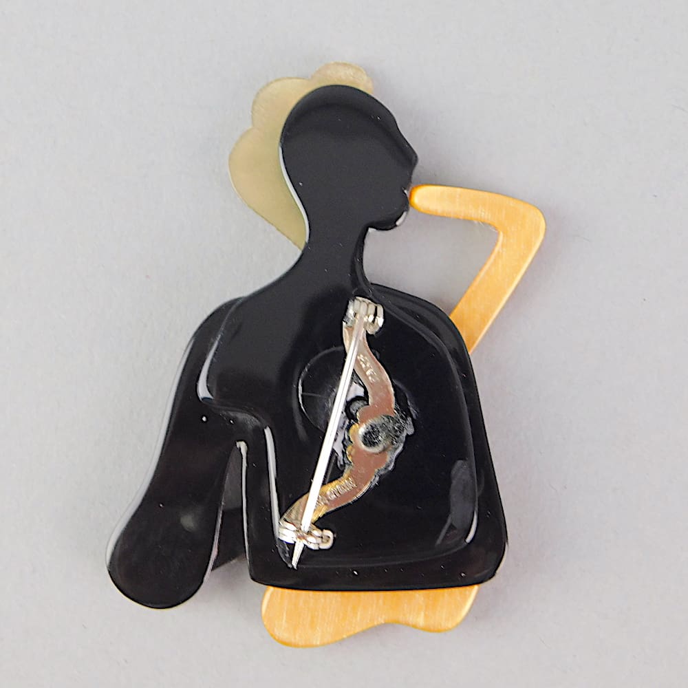 Vintage saxophonist brooch by Lea Stein signed on the V safety clasp.