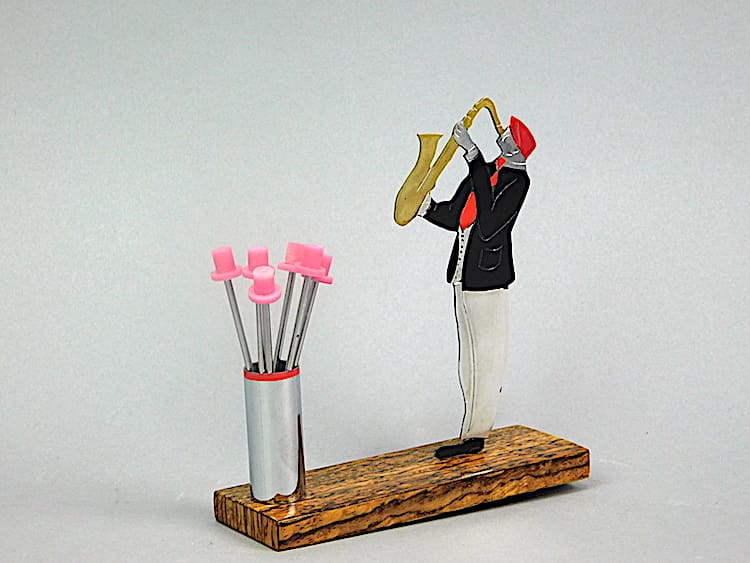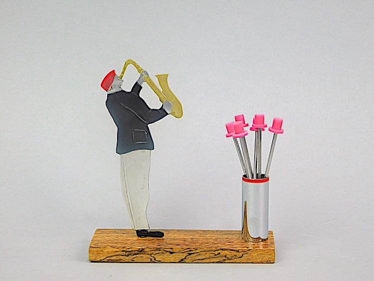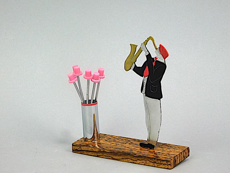 An art deco hand painted, unsigned cocktails sticks set by Sudre.