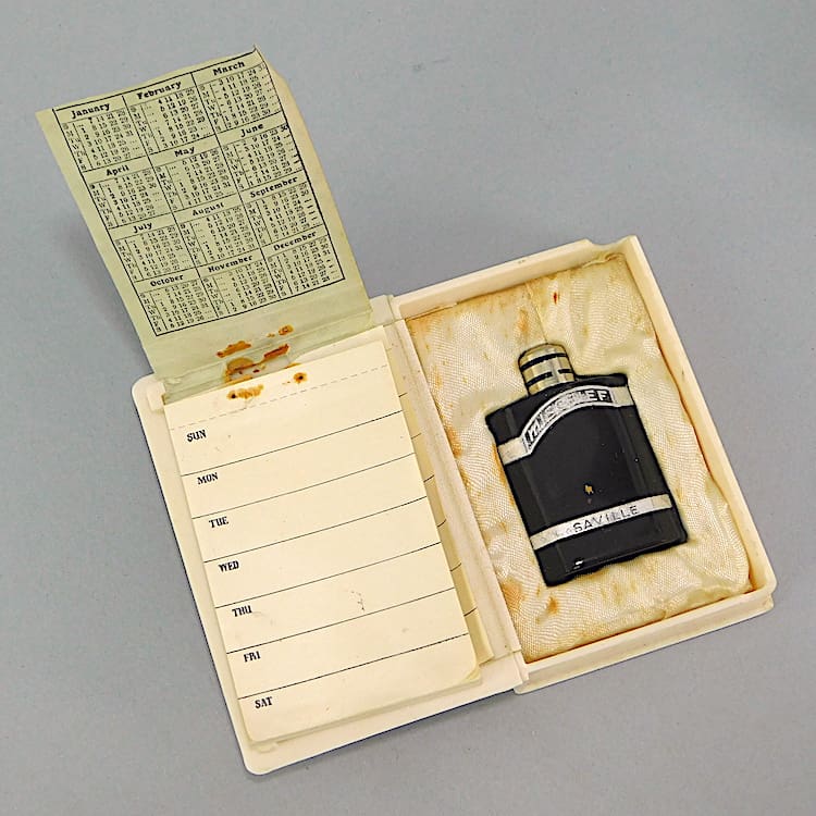 Inside the case is the bottle and an original note book with engagements printed on the cover.