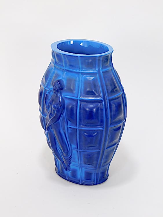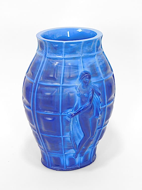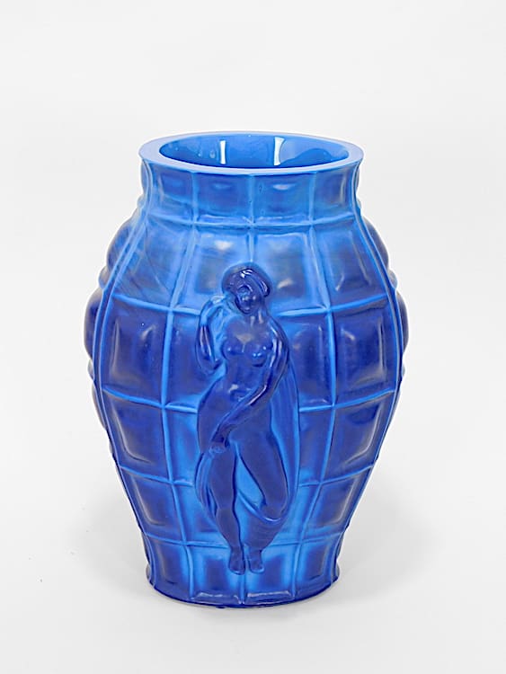 Fabulous vintage lapis lazuli glass vase with 4 individual ladies around the outside, all in different poses.