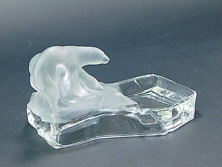 Czech double polar bears glass dish designed by Schlevogt in the 1930’s. It is part of his Ingrid line named after his daughter. The quality is excellent as one would expect from Schlevogt.