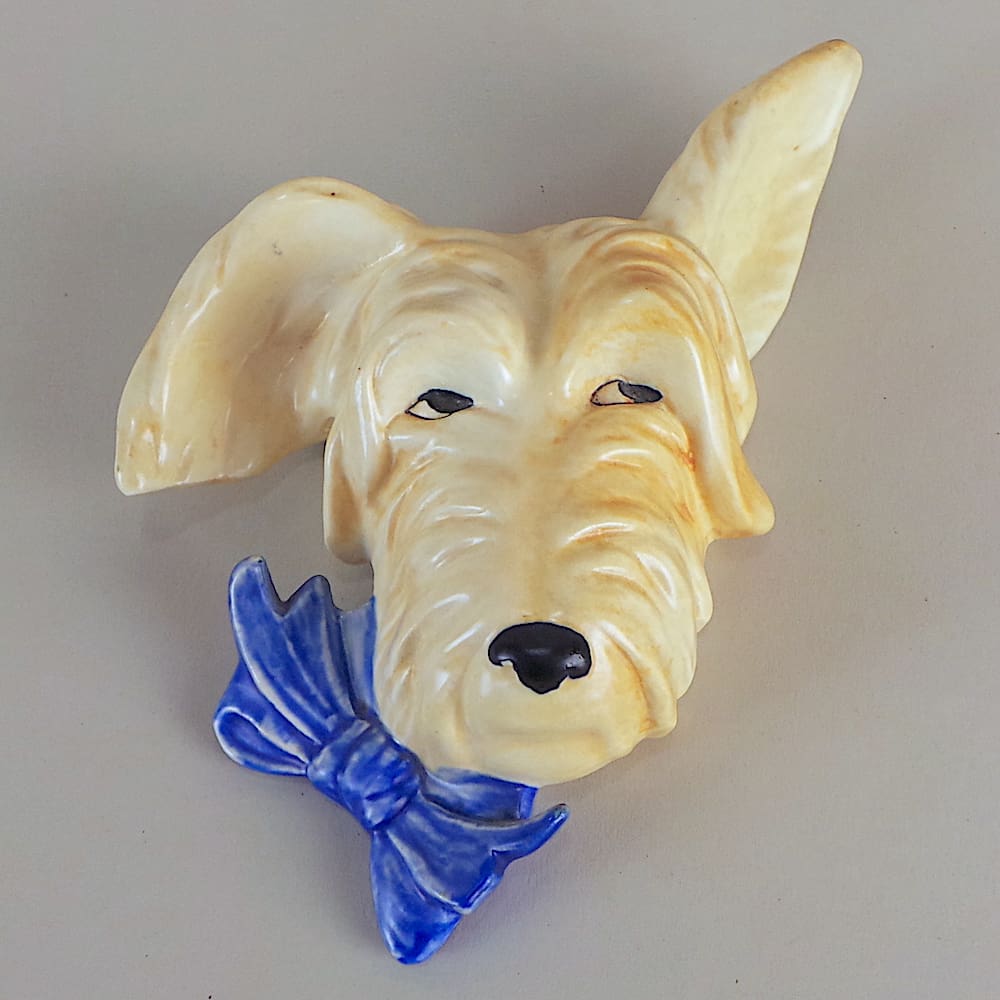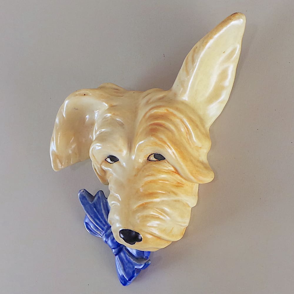 English Art Deco hand painted ceramic scotty dog wall mask.