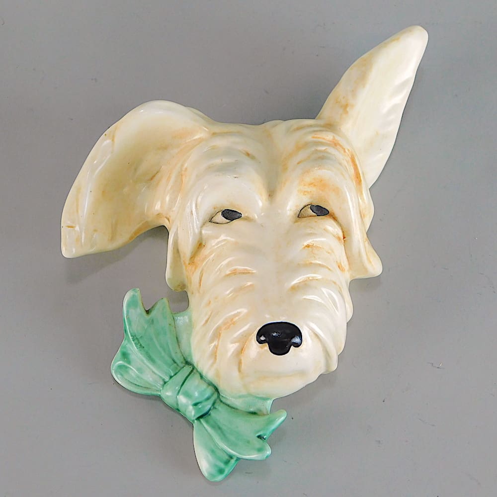 English Art Deco hand painted ceramic scotty dog wall mask.