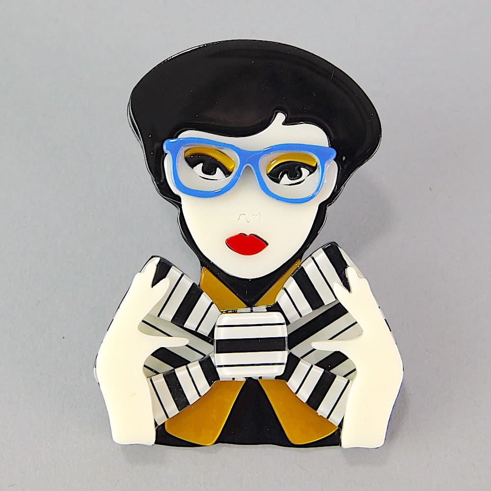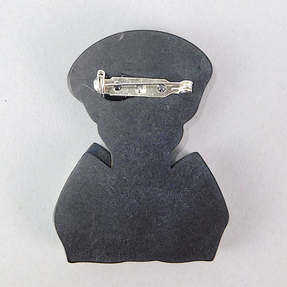 Hand made phenolic brooch fitted with a roll safety clasp.