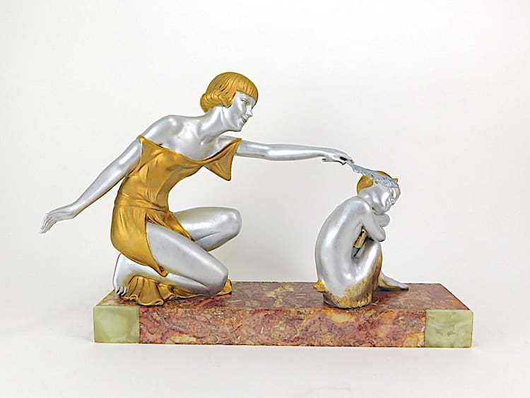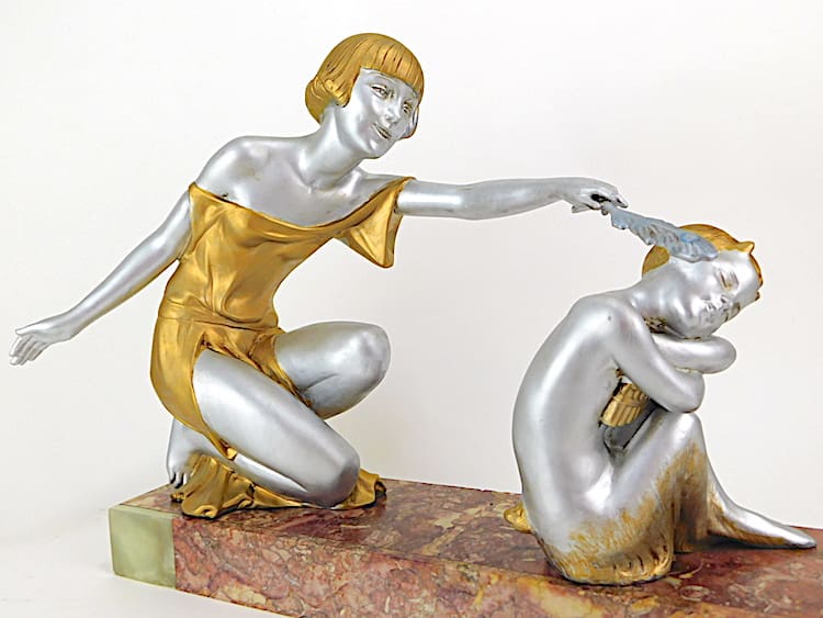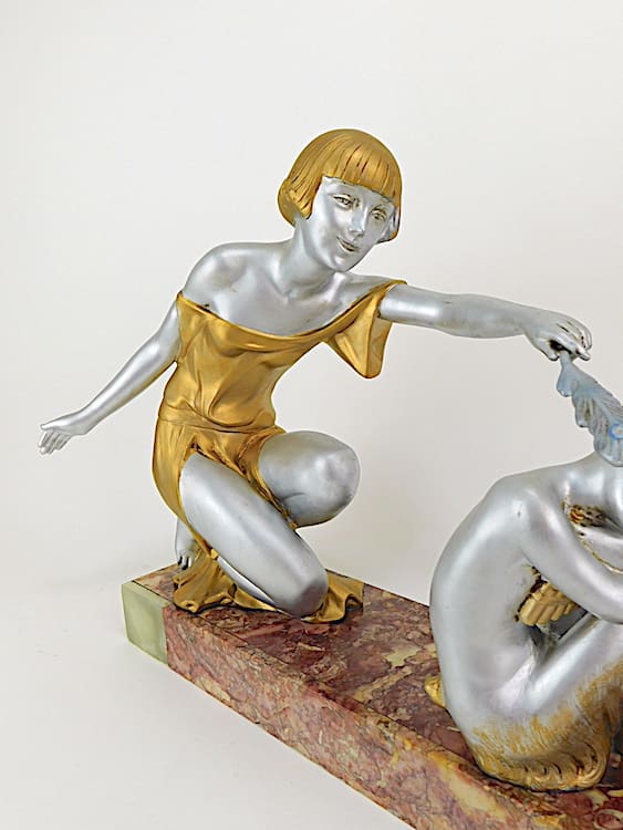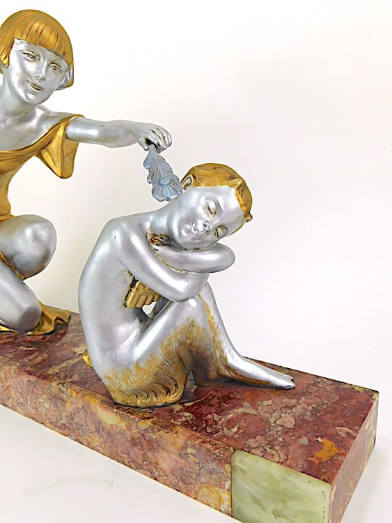 Good condition with minor nibbles to marble base and a small movement line on girls arm.