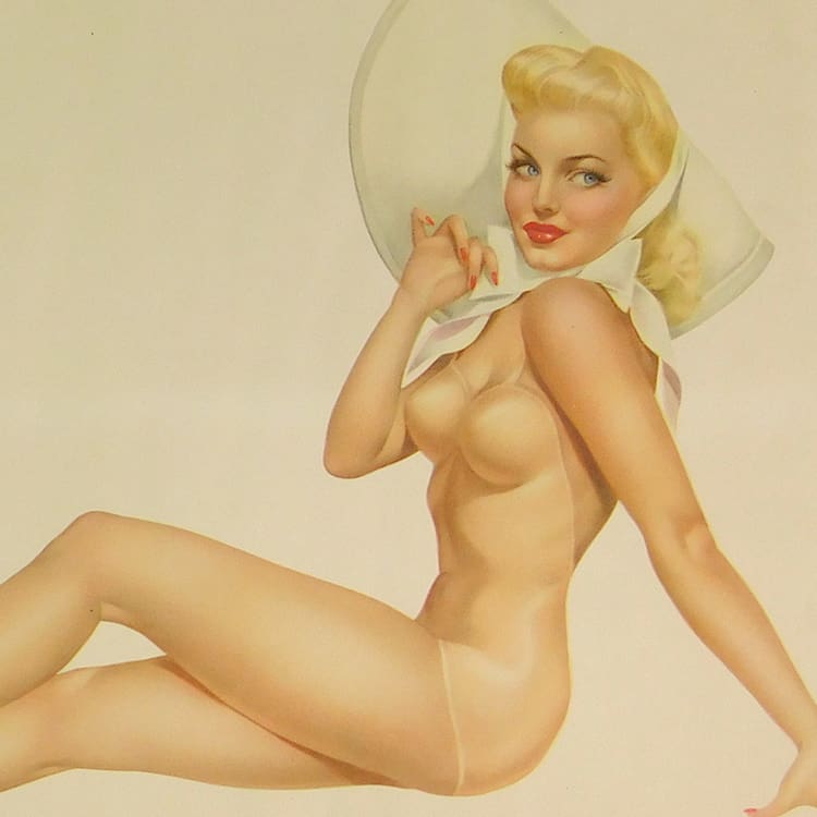 This is an original pin up girl from a vintage Esquire Girl calendar. Artwork by Alberto Varga with the printed signature to the bottom and verse by Earl Wilson.