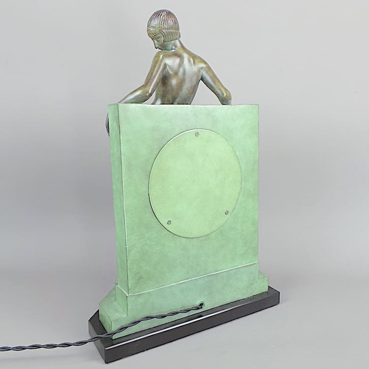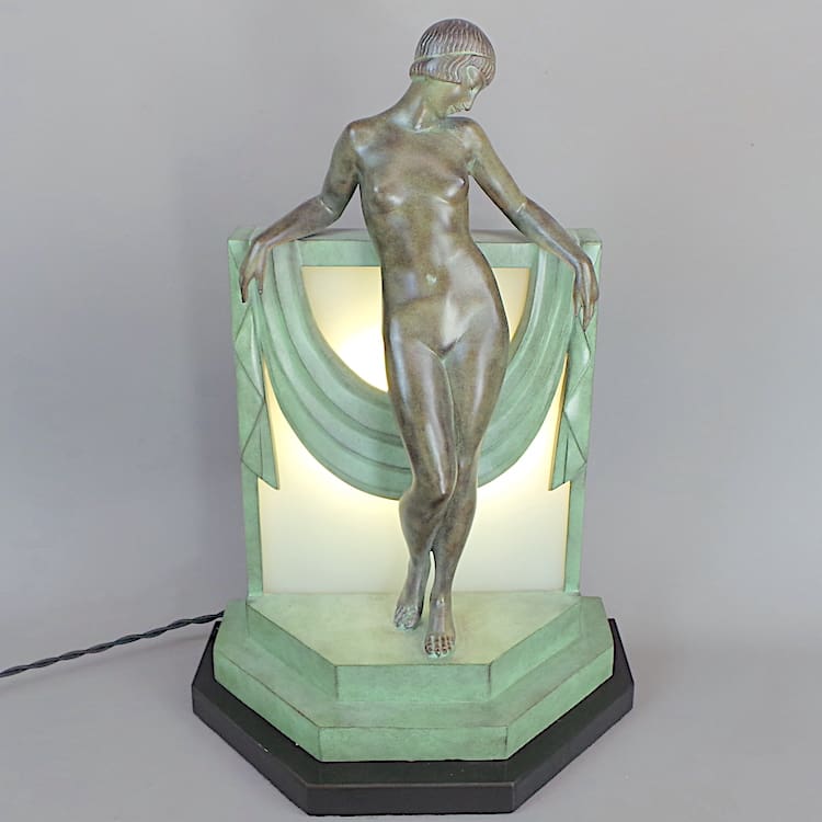 French Art Deco art metal lady lamp by Pierre Le Faguays.