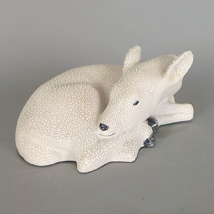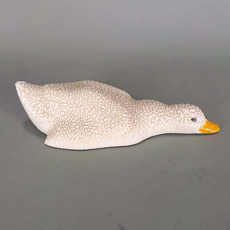 French art deco wax glazed sleeping deer and duck figures.