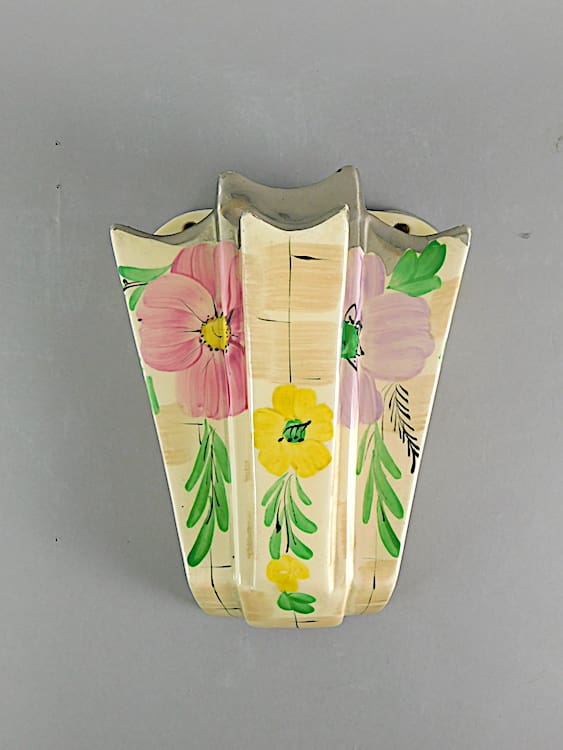 A set of 4 matching wall pockets. Hand painted with silver banding. Individual flower sections in each pocket. Can be split, £95 each.