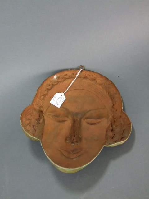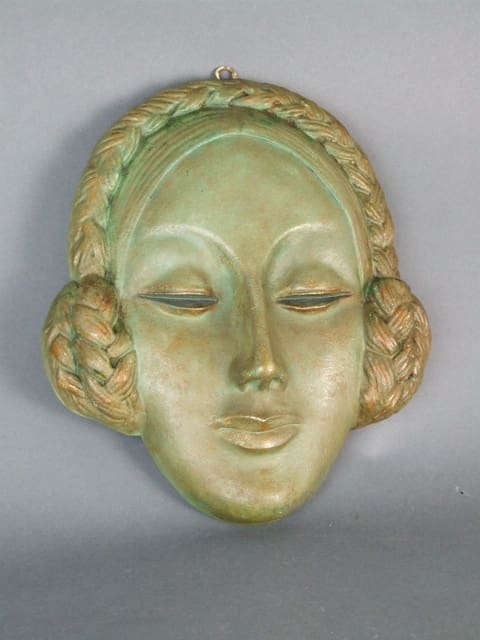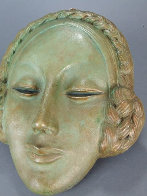 This is a rare Italian metal wall mask by Professor Severino Tremator. Tremator is famous for his art deco posters and can be found on the internet.