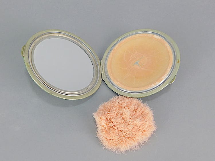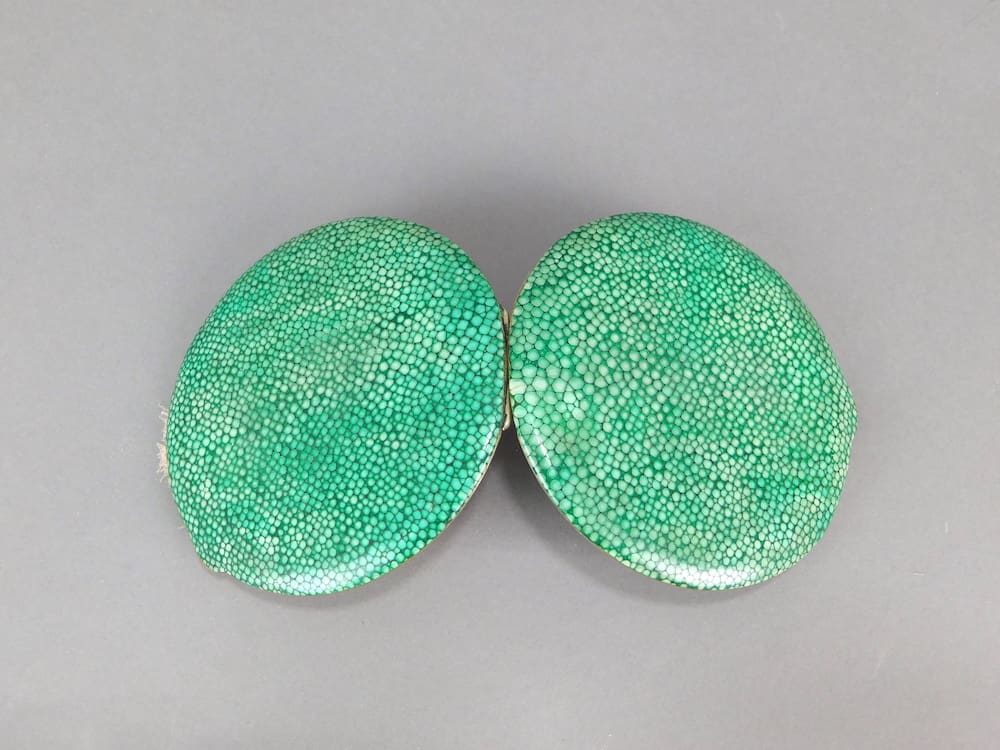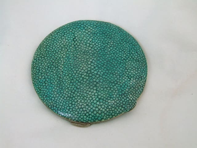 Wonderful real shagreen circular compact with internal mirror, mesh and puff – although they are well used.