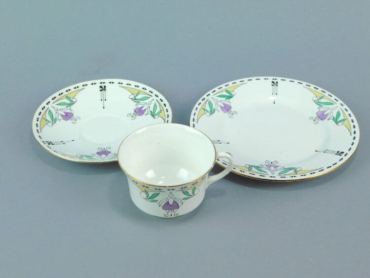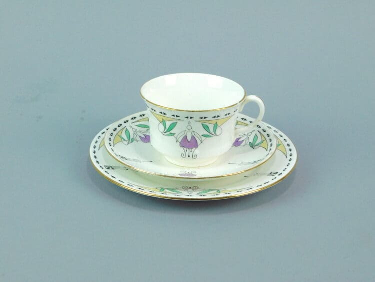 This is a very fine china trio by the English company of Shelley. Fuschia pattern No.11099.