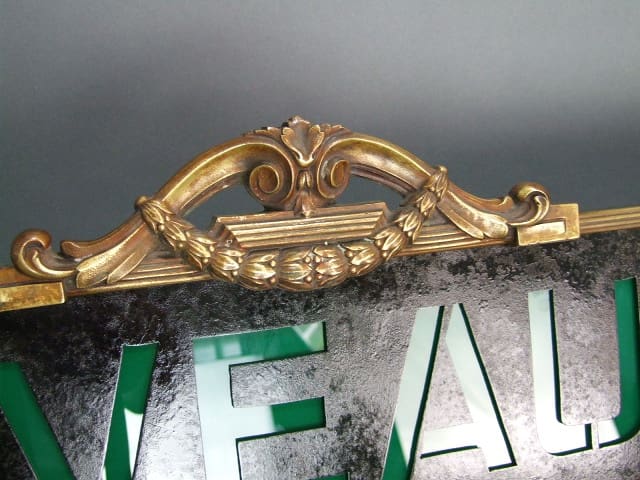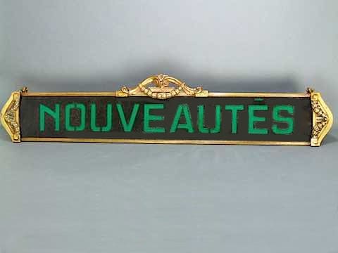 The sign is signed and stamped in the brass pieces, and the cut out metal sheets – Siegel, who were a very famous shop fittings and mannequin suppliers in Paris.