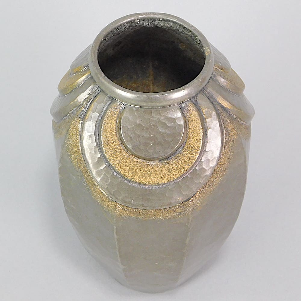 A signed French pewter vase by Solesmes.