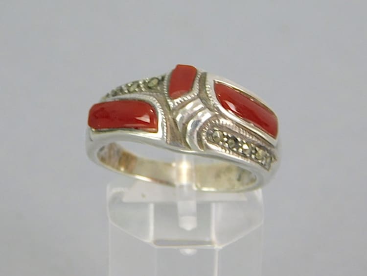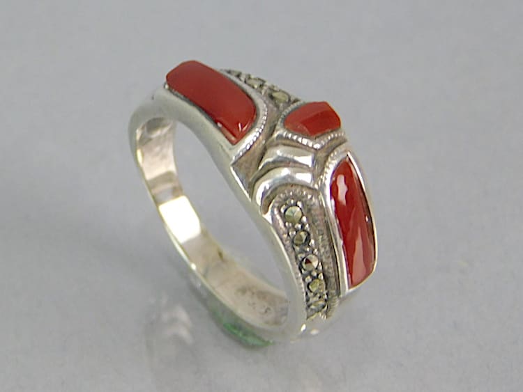 Red onyx and silver ring.