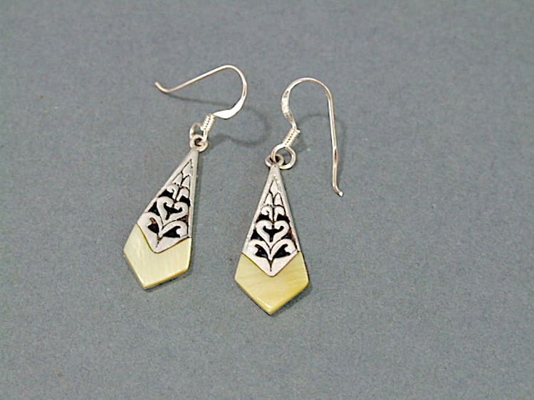 Silver and pearl art deco earrings, made for pierced ears with a hook fitting.