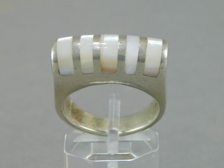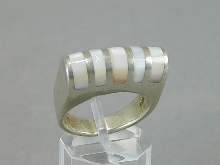 Contemporary silver and white pearl rings.