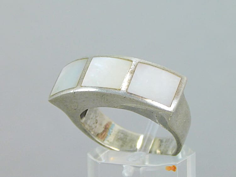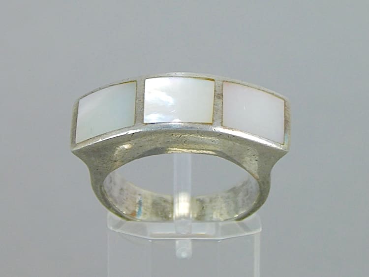 Contemporary silver and white pearl ring.