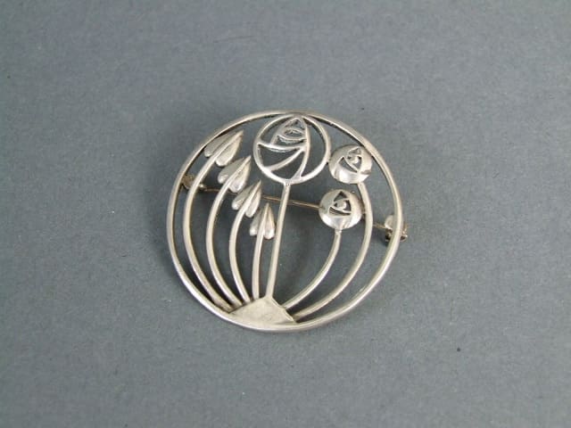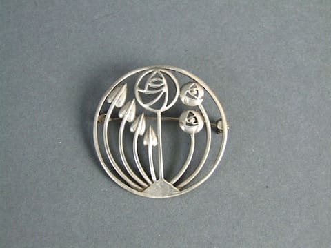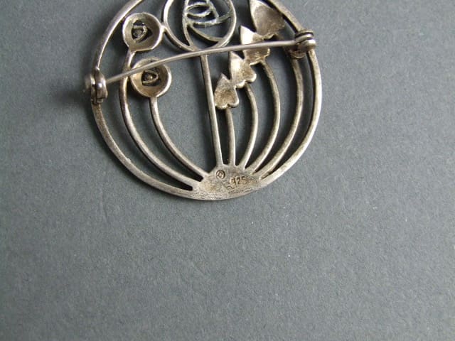 An original French silver brooch with art nouveau pattern. It is marked 925 to the back with a makers mark which is indistinct. Fitted with a roll safety clasp.