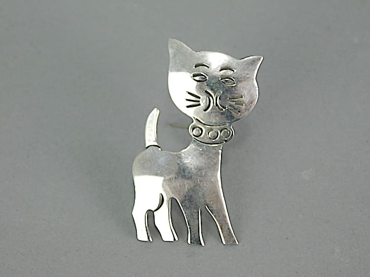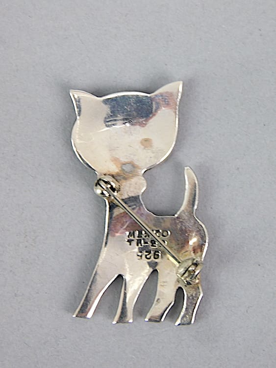 Mexican silver cat brooch, marked to the reverse 925 silver and Mexico.