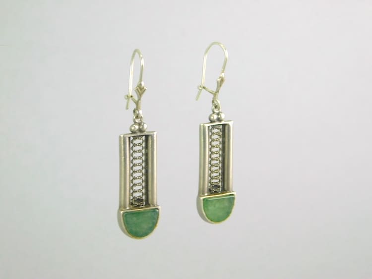 Green glass and silver earrings for pierced ears.