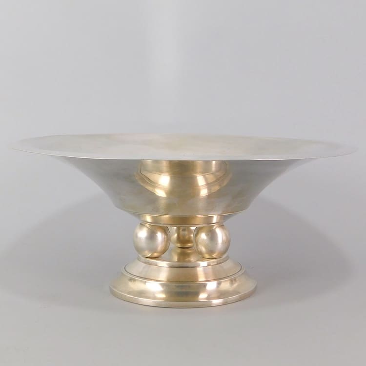 French silver plated bronze tazza with central ball detail.