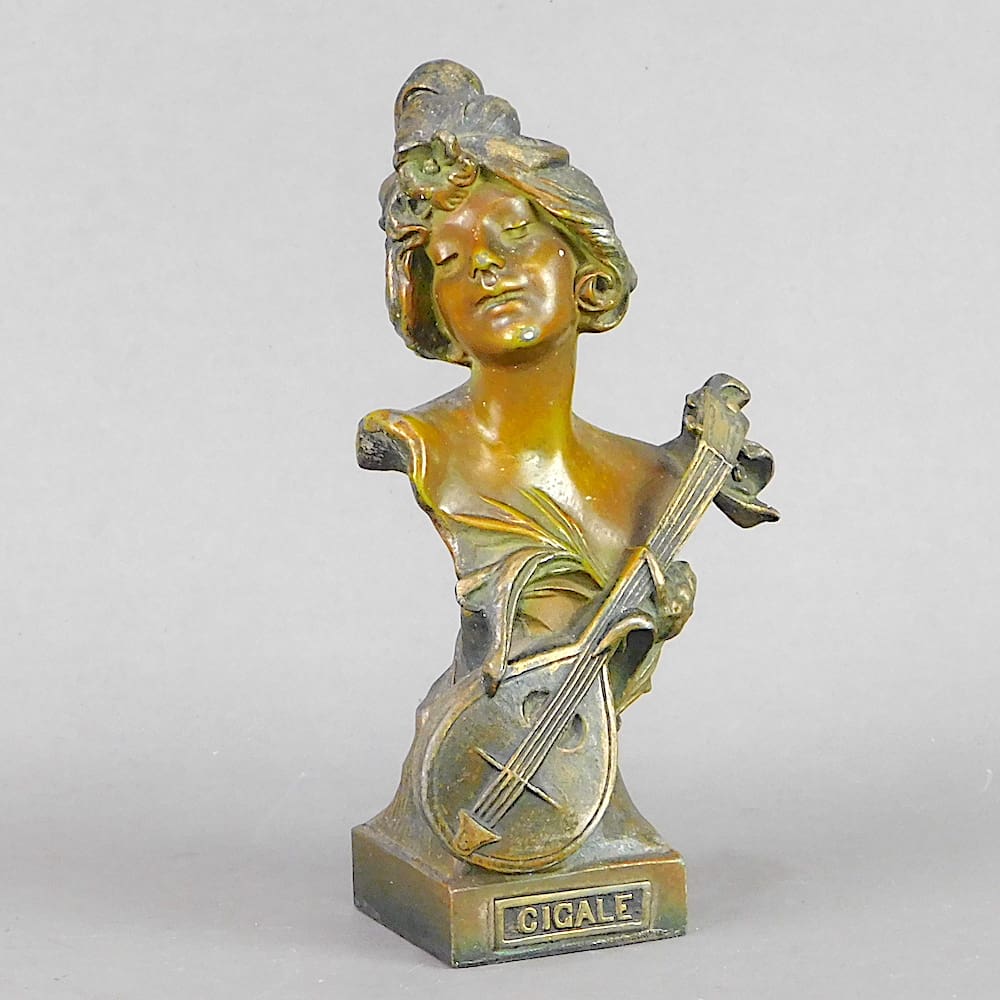 French spelter art nouveau bust which we believe is by Emmanuel Villanis although it is unsigned.