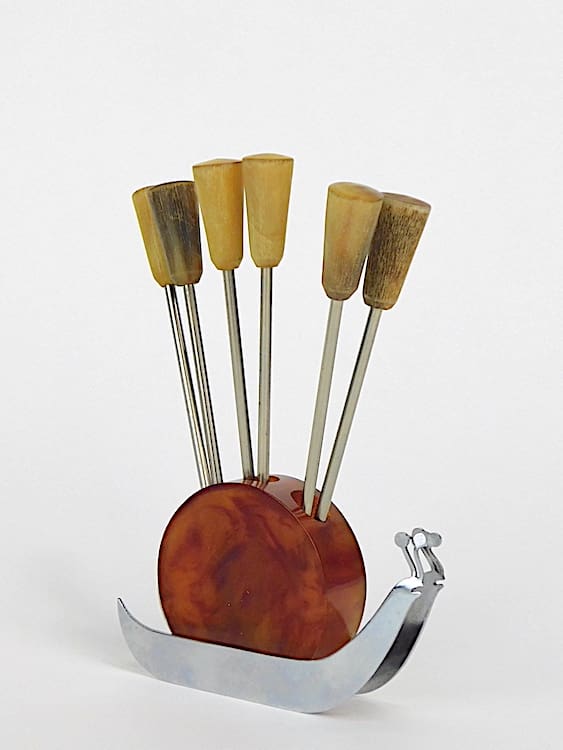 Stylish chrome and celluloid picks set (6), probably designed by Benjamin Rabier.