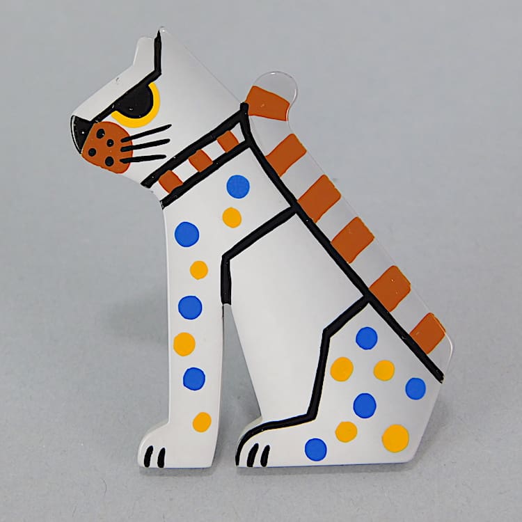 Rare cat brooch, hand painted vintage piece by Mare-Christine Pavone.