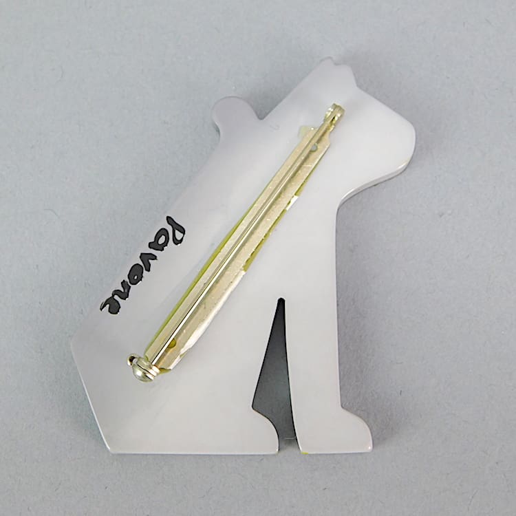 vintage galalith, signed to the back by Pavone and fitted with a roll safety clasp.