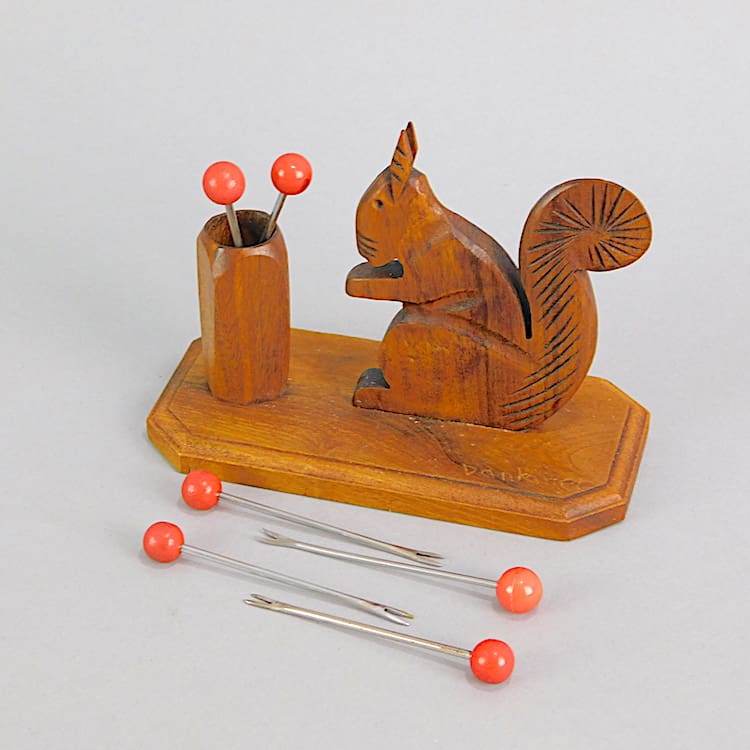 French hand carved squirrel cocktail sticks set by Dankarner (signed to the base).