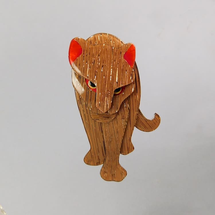 Eros large stalking Jaguar brooch by Lea Stein. Signed on the V safety clasp. 3.25 inches (8cm) long. In as new condition.