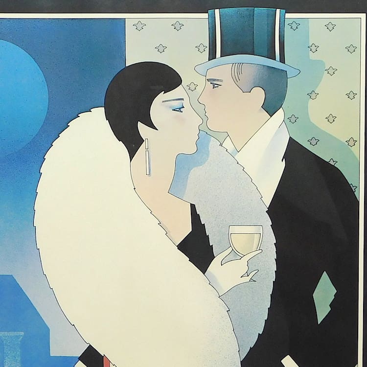 1980s art deco style print. Mounted in a matt black contemporary frame.