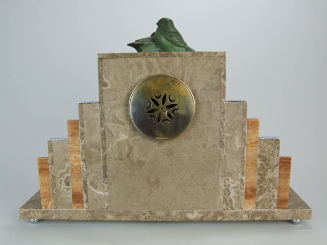 French art deco marble and ribbed chrome streamline architectural clock.