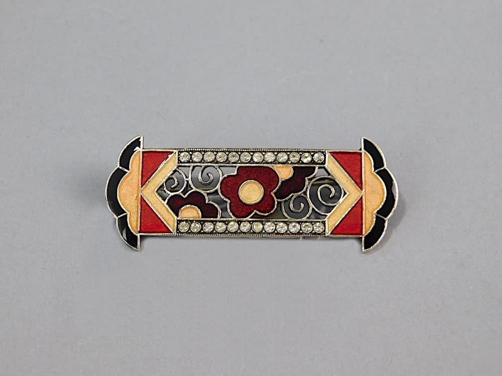 Large enamel floral brooch by Pierre Bex. Fitted with a signed slide safety clasp.